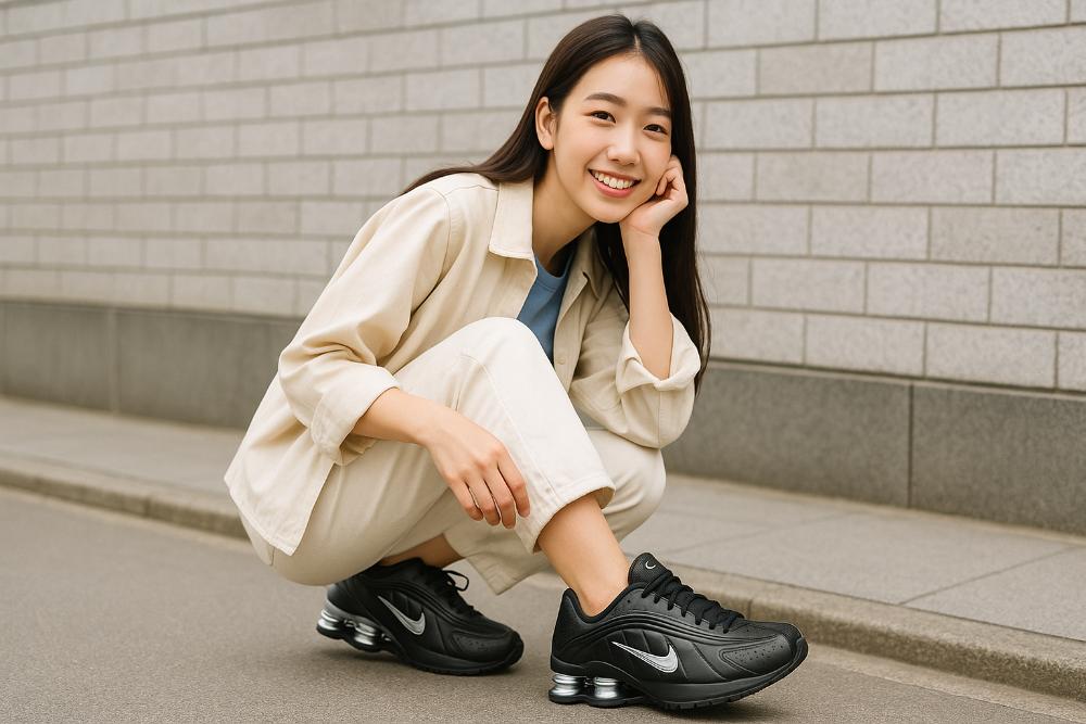 また、ファッション性の高さも人気の理由のひとつです。Y2Kトレンドの再燃により、2000年代デザインのスニーカーが再注目される中で、ショックスR4はその象徴的存在として位置づけられています。