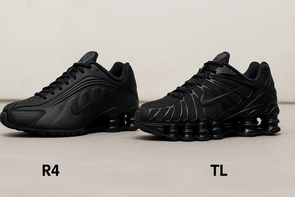 公式の商品説明でも、R4はヒールのShoxが重量分散と快適性に寄与し、TLはフルレングスのShoxで衝撃吸収と大胆な見た目を強調しています(参照:Nike Shox R4 メンズ商品ページ – https://www.nike.com/t/shox-r4-mens-shoes-0PISn0m1/HQ1988-400 )(参照:Nike Shox TL メンズ商品ページ – https://www.nike.com/t/shox-tl-mens-shoes-NfeK8Awe )。